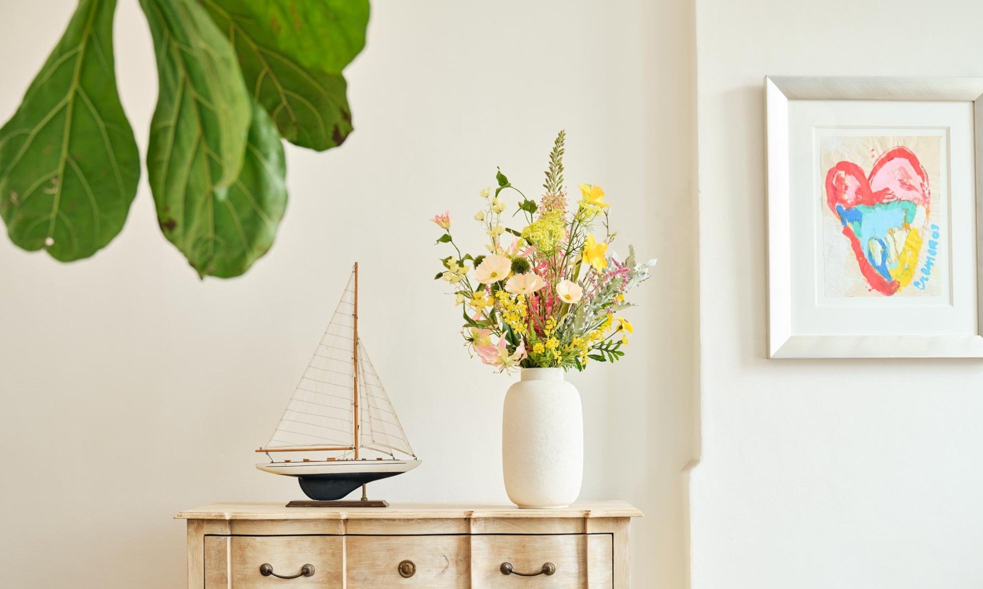 Kunstbloemen gaan velen malen langer mee dan echte bloemen. Of je nu op zoek bent naar een zijden veldboeket, een groot kunstboeket of klein kunstboeket. Wij zien onze zijden bloemen boeketten als een design stuk voor in huis – en niet als een wegwerp product.
