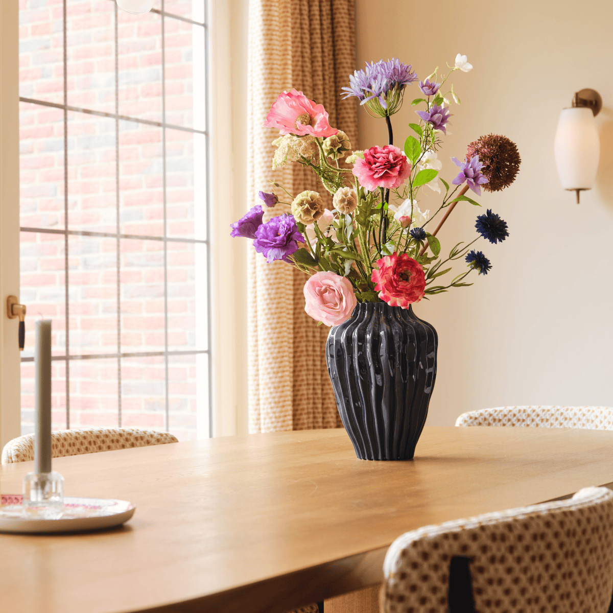 Mis en valeur avec notre Good Vase.43 ou Good Vase.44 – deux vases en céramique de 29 cm de haut et 25 cm de large, disponibles en vert et en rose. Leur forme généreuse et leur brillance mettent idéalement le bouquet en valeur.